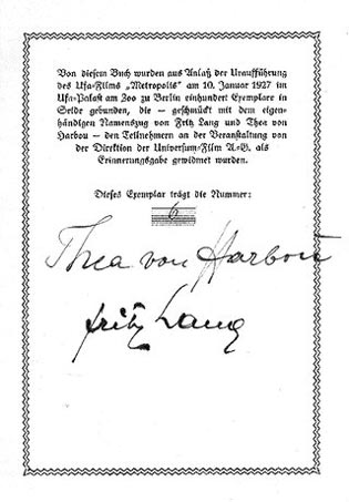 Autographen von Thea von Harbou und Fritz Lang im Roman zu "Metropolis"