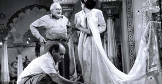 Richard Angst, Fritz Lang, Debra Paget (v.l.n.r.) (Dreharbeiten)