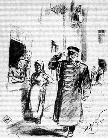 Emil Jannings als Portier. Entwurf: Theo Matejko.