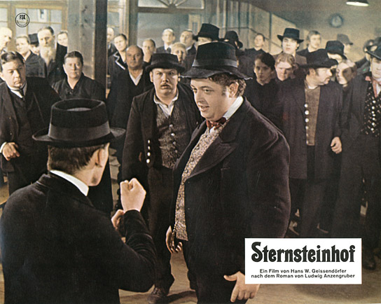 Popis: Tilo Prückner (from behind), Peter Kern (center, front) in "Sternsteinhof" (1976)