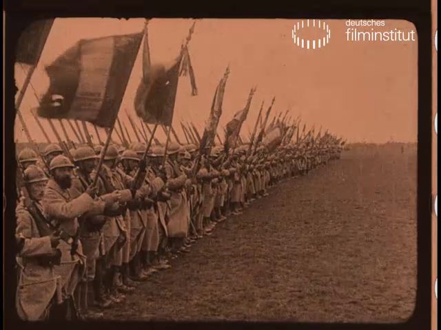 Film footage of unclear provenance from the First World War, showing French soldiers in various situations: marching and on parade, in trenches and other shelters, at fortification work and meetings. ...