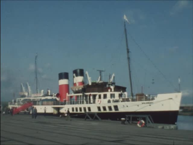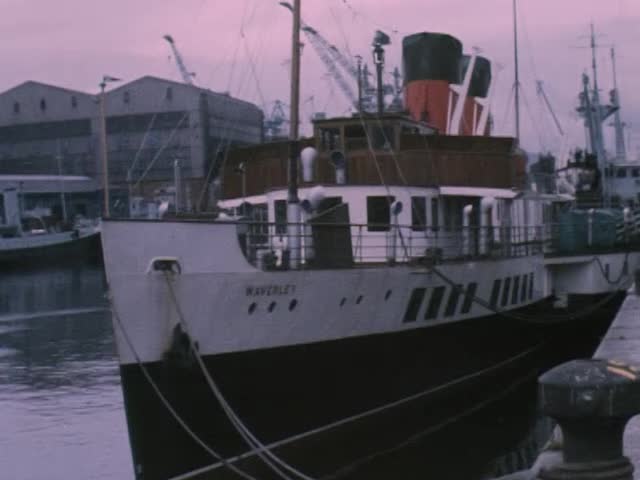 The 'Waverley' paddle steamer makes its way along the River Clyde in 1977. Finishes with footage of the Waverley undergoing refitting work in dry dock.