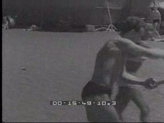 Proietti gioca con un ragazzino sulla spiaggia