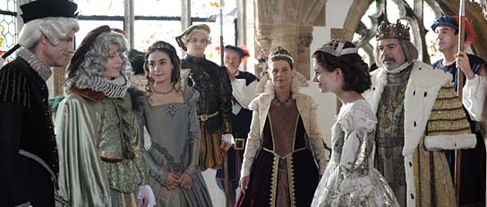 Ferdinand Schmidt-Modrow, Jasmin Barbara Mairhofer, Verena Buratti, Hanna Merki, Oliver Karbus (second to sixth front, left to right) in "Das Märchen von der Prinzessin, die unbedingt in einem Märch...