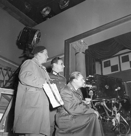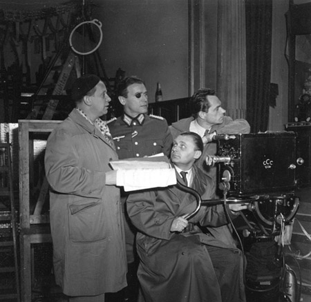 Falk Harnack, Annemarie Düringer (front, left to right) while shooting "Der 20. Juli" (1955)