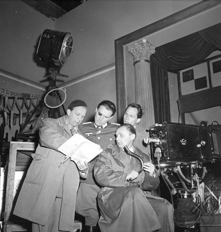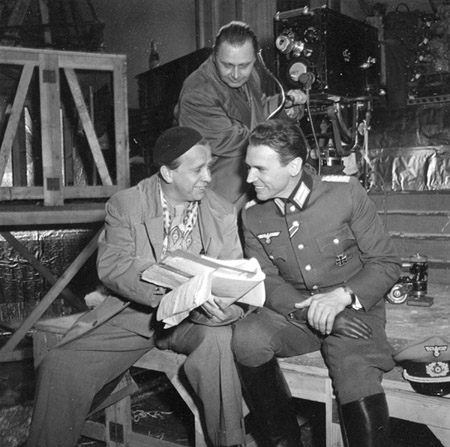 Falk Harnack, Karl Löb, Wolfgang Preiss (left to right) while shooting "Der 20. Juli" (1955)