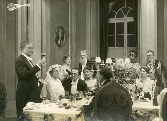 Beskrivelse: Adolf Klein (on the left), Henny Porten, Theodor Loos, Olga Engl (sitting, from left to right)