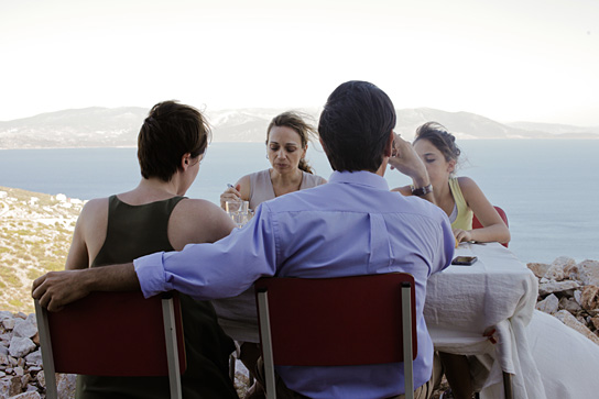 Marisha Triantafyllidou, Maria Kallimani, Alexandros Logothetis, Zoi Asimaki (from left to right) in "Sto Spiti - At Home" (2013/14)