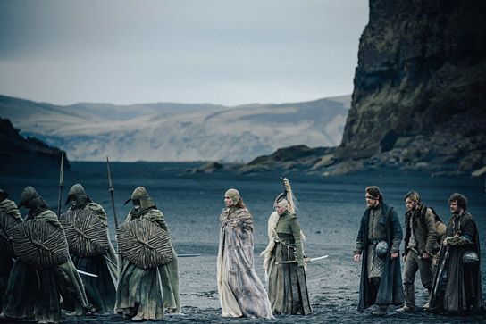 Rosalinde Mynster, Maria Erwolte, Gijs Naber, Jannis Niewöhner, Dominic Marcus Singer (center to right) in "Hagen - Im Tal der Nibelungen" (2024)