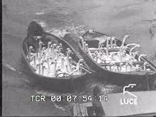 Gruppo di persone di diverse nazionalità, tra cui due prelati, attende la partenza dell'aereo Roma-Amburgo sul piazzale dell'aeroporto di Ciampino. Campo medio