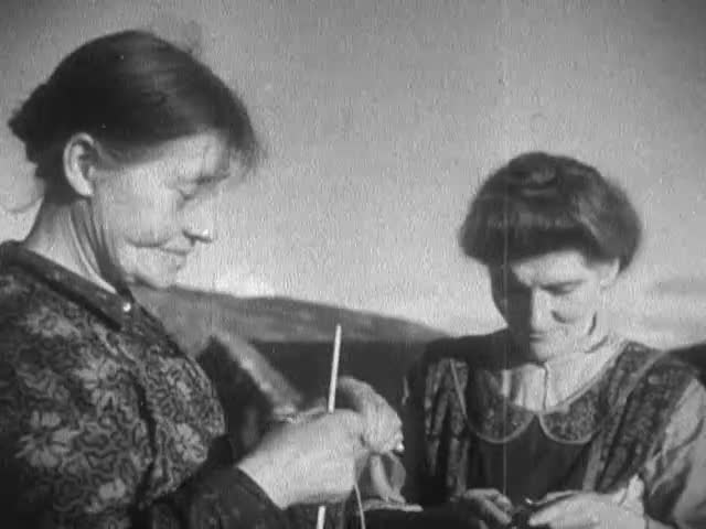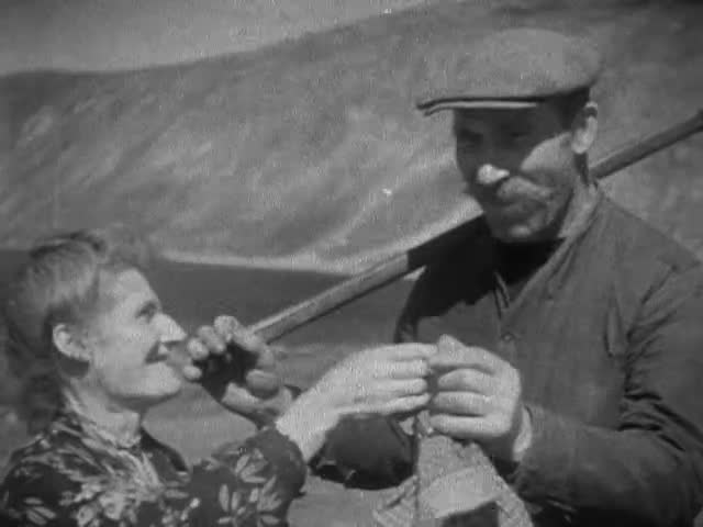 Crofters are seen gathering and then "rooing" sheep, carding and spinning the wool to make jumpers. [One of a group of films about Shetland made by Jenny Brown and purchased by John Grierson for the ...