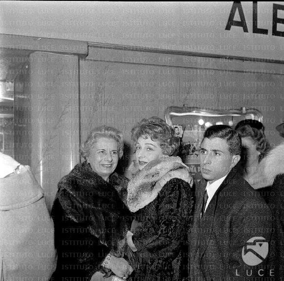 Andreina Pagnani e la madre colte tra la folla in occasione della prima del film 'Una vita difficile'