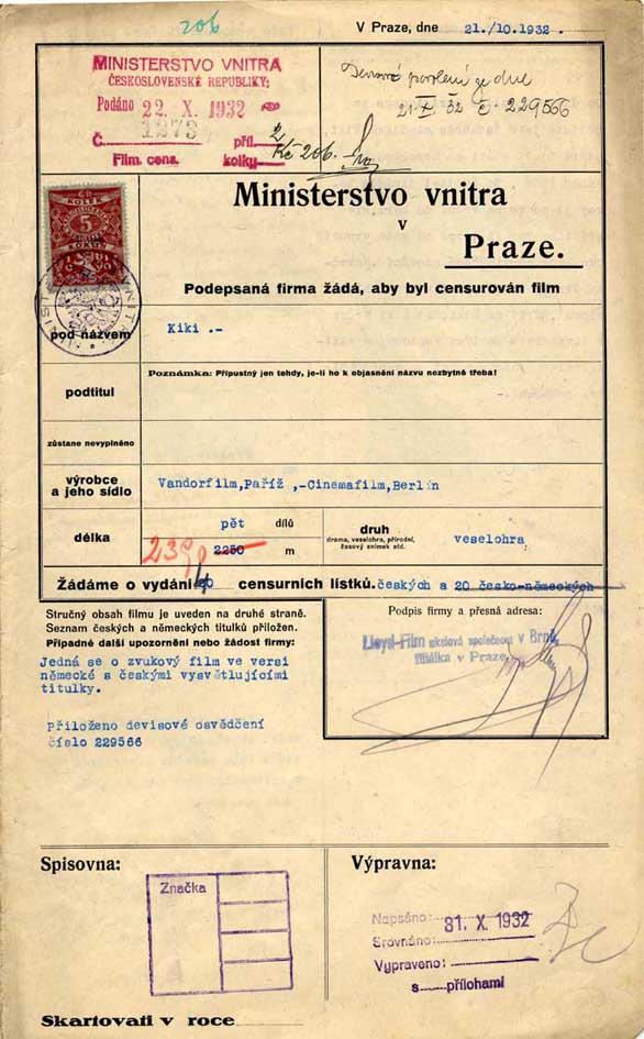 Schlüsselwörter: First application / Lloydfilm, Brno / Ministerstvo vnitra v Praze