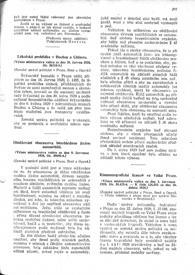Kinematografické licence ve Velké Praze (Výnos ministerstva vnitra ze dne 3.cervence 1920,cís.38.423-6 - k císlu 126.553 ze dne 30.dubna 1920)