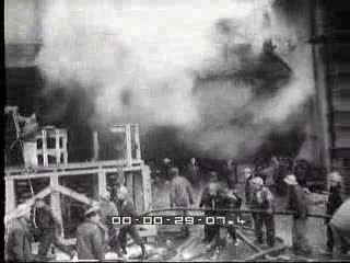 3 - operai e vigili su impalcature e sulla banchina fanno scorrere tra le mani gli idranti