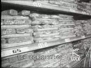 In una sala molto affollata, la principessa Giovanna e il Ministro Antonio Mosconi, insieme ad altre persone, presenziano all'inaugurazione del gagliardetto degli ex combattenti, impiegati alla Corte dei Conti. Un sacerdote sta per benedire il gagliardetto. Campo lungo con scorcio dall'alto