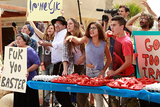 Mali Levi Gershon (front in the middle), Michelle Treves (front second from the right), Idan Carmeli (front on the right) in "Atomic Falafel" (2014-16)