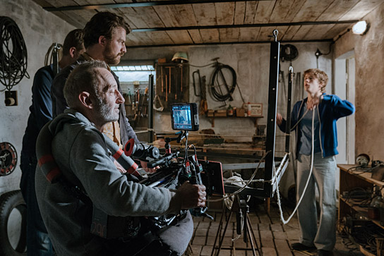 Friedrich Mücke (second from left), Torsten Breuer (front), Jonas Holdenrieder (right) while shooting "Ballon" (2018)