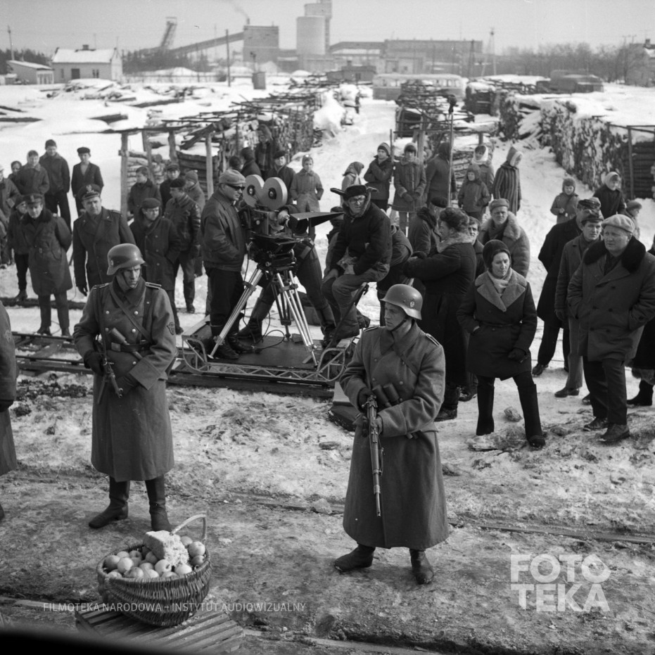 Keywords: mundur / zima / kamera / hełm / szyny / owoce / śnieg / jabłko / kosz / wózek do kamery / karabin / hitlerowiec / Director: Chęciński Sylwester / Magda Julian / Sobociński Witold