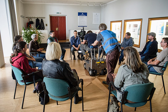 Description: Florian David Fitz (center back) while shooting "Oskars Kleid" (2022)