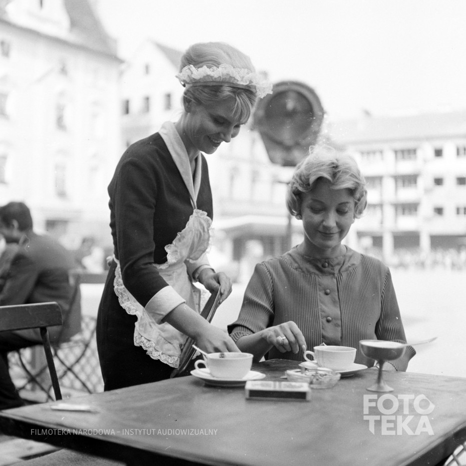 Keywords: kawiarnia / stolik / filiżanka / kelnerka / Director: Has Wojciech Jerzy / Wysocka Lidia