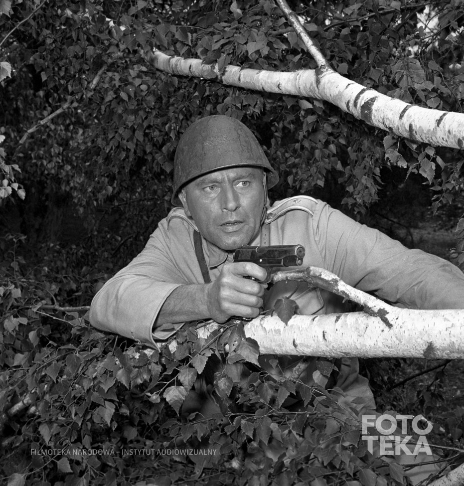 Keywords: mundur / hełm / pistolet / liście / Director: Różewicz Stanisław / Schmidt Tadeusz