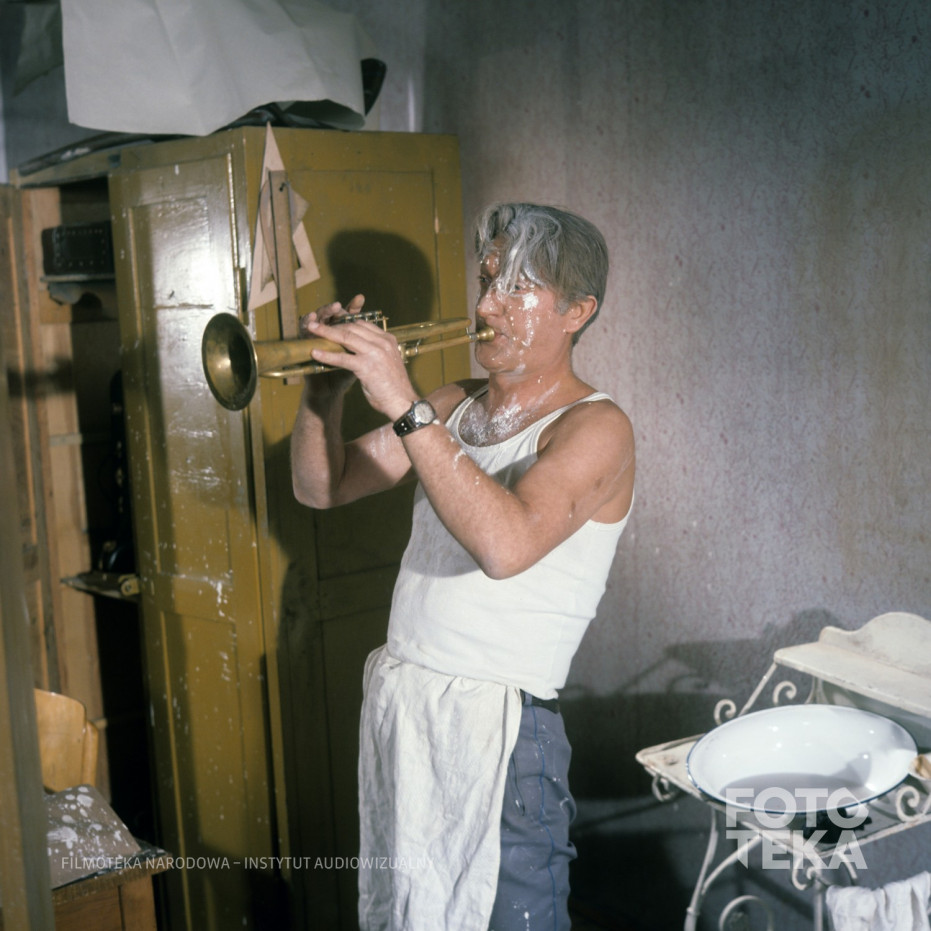 Keywords: instrument muzyczny / farba / trąbka / miska / Director: Chmielewski Tadeusz / Nowak Józef
