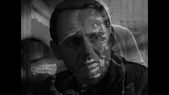 Description: Samuel Finzi in front of frame from "M" starring Peter Lorre in "Fritz Lang" (2014-16)