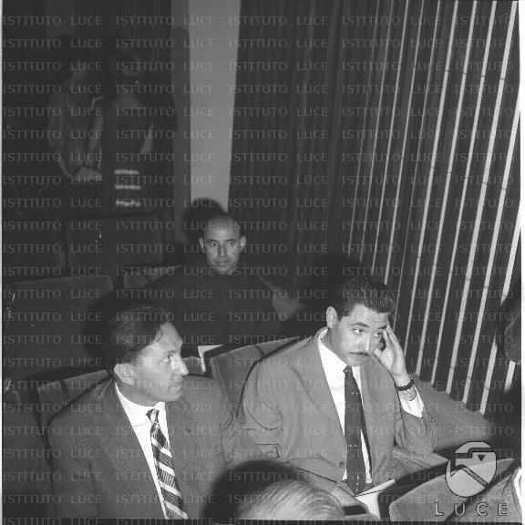 Alcuni dei presenti al convegno: in primo piano, con i baffi, Angelo Maria Ripellino, alle sue spalle Padre Michele Serra. Campo medio