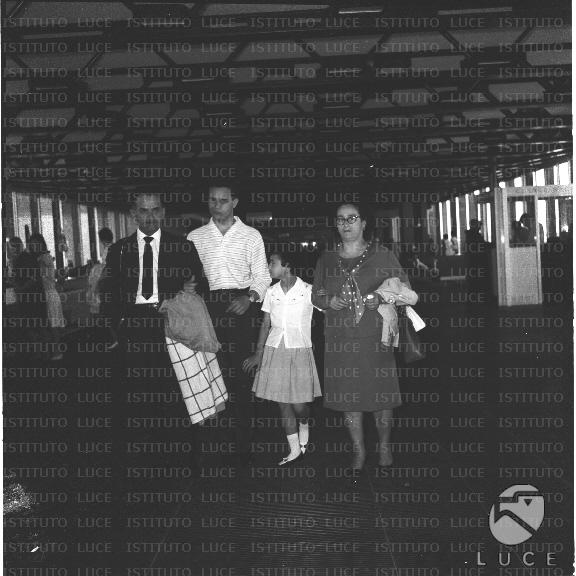 Lucia Rebuttini, bambina non vedente, all'aeroporto di Fiumicino con il padre Umberto e altre persone in partenza per gli Stati Uniti - campo medio