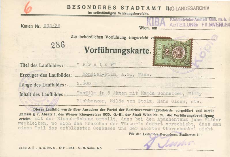 Kuvaus: Following part had to be removed:1) scene of the "Apachentanz", where the skirt of the female dancer displaced in way that the bare thigh and buttocks are viewable.
