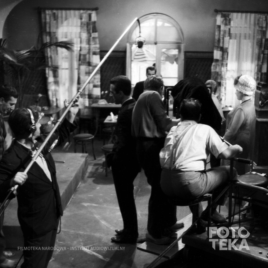 Avainsanat: kawiarnia / kamera / mikrofon / ekipa filmowa / Director: Rybkowski Jan / Holoubek Gustaw / Łapicki Andrzej / Iżewska Teresa