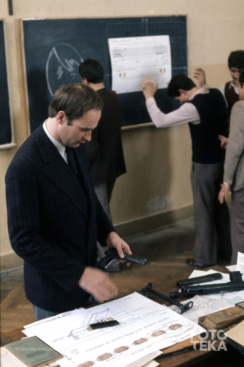 Avainsanat: broń / tablica / pistolet / szkoła / Director: Łomnicki Jan / Marynowski Borys