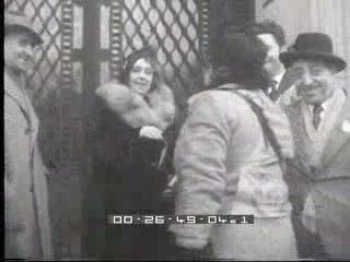 1 - la signora Martinengo con un mazzo di fiori, accompagnata da autorità si dirige sulla tribuna d'onore montata nel cantiere navale