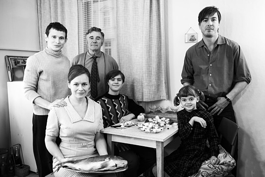 Description: Joel Basman, Anja Schneider, Jörg Schüttauf, Lamer Warnoch, Yuna Bennett, Albrecht Schuch (left to right) in "Lieber Thomas" (2021)