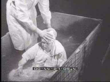 3 - un pastore fa immergere in una vasca una donna vestita di bianco