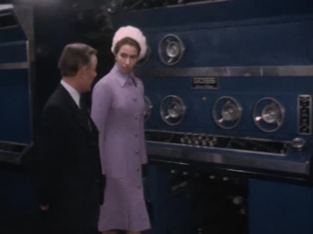 Princess Anne tours the new Daily Record complex in Glasgow, starts the printing presses and is shown the finished newspaper.