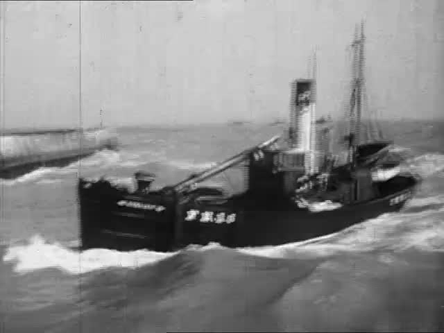 Herring trawlers come into port and unload their cargo at Lowestoft. Includes shots of women gutting fish.