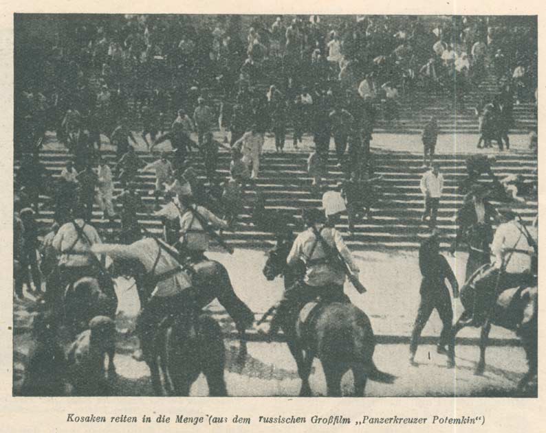 Kosaken reiten in die Menge (aus dem russischen Großfilm "Panzerkreuzer Potemkin)