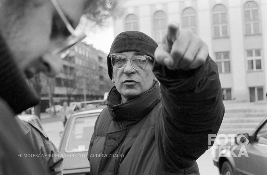 Descrizione: On the set of “A Short Film About Killing” (1987), dir. Krzysztof Kieślowski. The director at work on set. Photo: Romuald Pieńkowski, black and white negative, 35 mm format