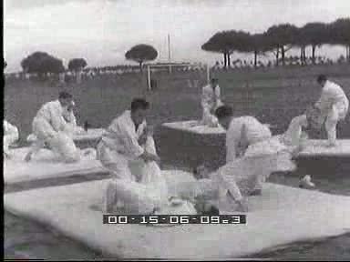 La squadra delle Fiamme Gialle schierata durante la cerimonia di accensione della fiamma olimpica; campo medio