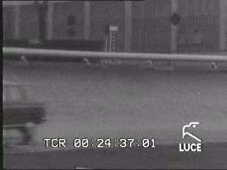 "Italia- Sulla pista di mirafiori spettacolare parata delle nuove Fiat 100 R [!]con pioggia e nebbia"