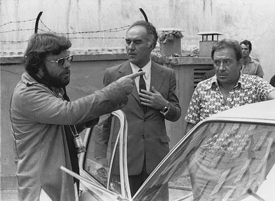 Peter Fleischmann, Michel Piccoli, Ugo Tognazzi (from left to right) on the set of "Der 3. Grad" (1974/75)