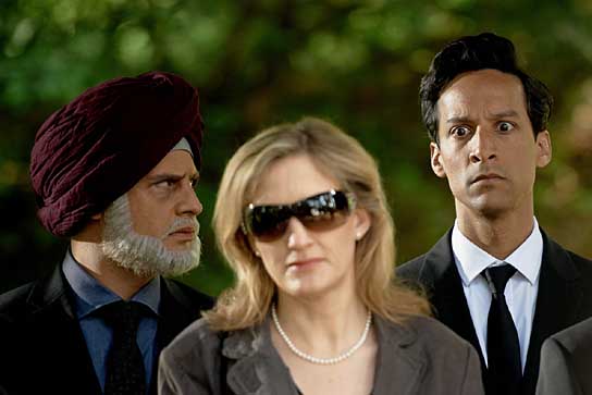 Moritz Bleibtreu, Danny Pudi (in the back, from left to right) in "Vijay und ich - Meine Frau geht fremd mit mir" (2012/13)