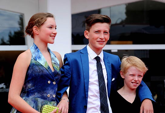 Helena Phil, Levin Liam, Til Niklas Theinert (from left to right) on the red carpet of Venice Film Festival, Italy, August 29, 2013