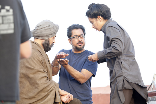 Irrfan Khan, Anup Singh, Tillotama Shome (from left to right) on the set of "Qissa - Der Geist ist ein einsamer Wanderer" (2012/13)