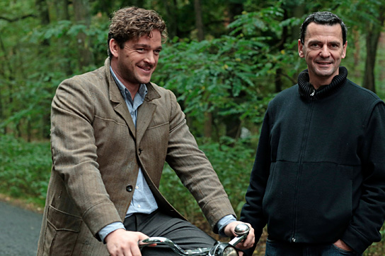 Ronald Zehrfeld, Christian Petzold (from left to right) on the set of "Phoenix" (2013/14)