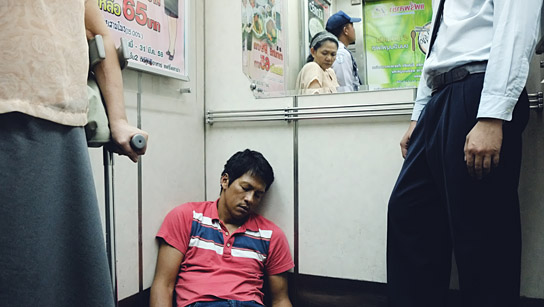 Beskrivelse: Jenjira Pongpas Widner (on the left), Banlop Lomnoi (sitting) in "Cemetery of Splendour" (2015)