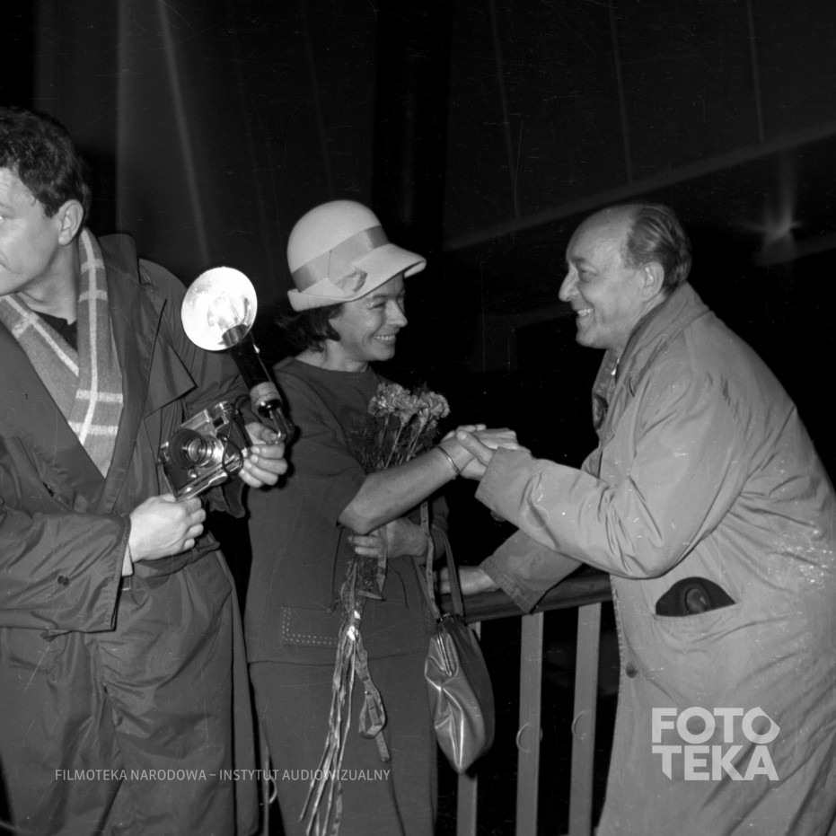 Nøkkelord: aparat fotograficzny / uścisk dłoni / premiera / Director: Różewicz Stanisław / Szaflarska Danuta