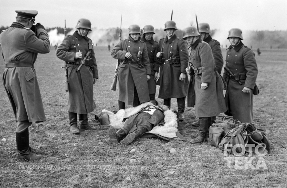 Nøkkelord: mundur / śmierć / zwłoki / aparat fotograficzny / zdjęcie / hełm / karabin / hitlerowiec / Director: Poręba Bohdan / Radwan Jerzy / Filipski Ryszard